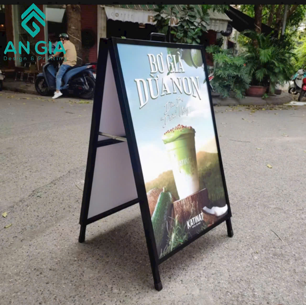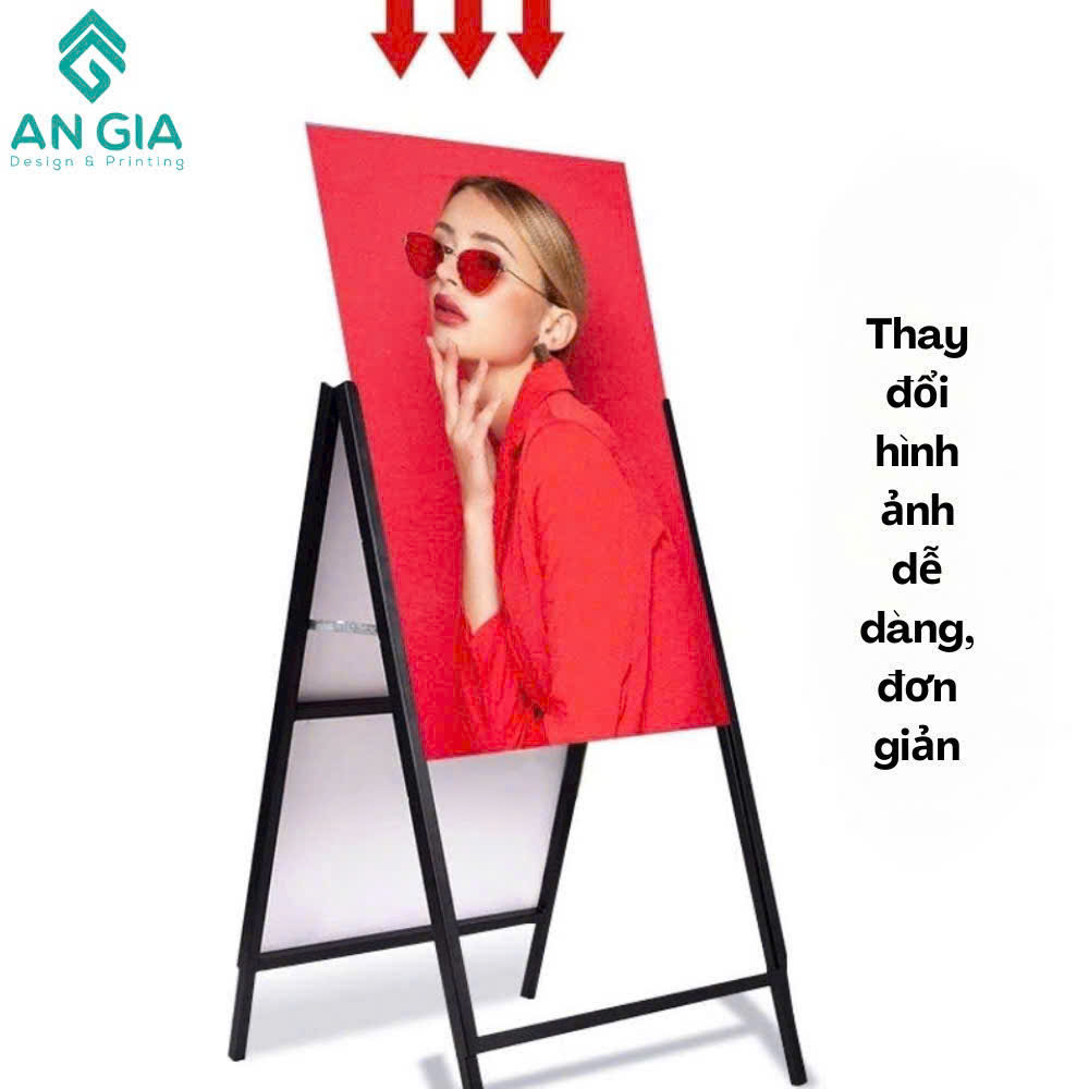 Thiết kế chữ A giúp standee đứng vững trên nhiều bề mặt, dễ dàng lắp đặt và thay đổi poster quảng cáo, tiết kiệm chi phí thi công so với biển quảng cáo cố định.