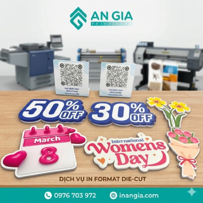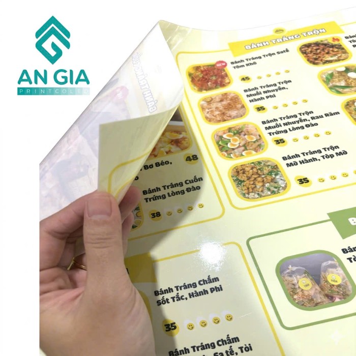 Chất Liệu: In Decal sữa nhựa định lượng 150gsm, cán màng bóng/ mờ bảo vệ mực in