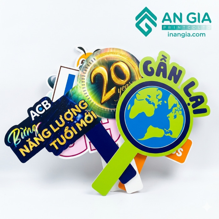 Chất Liệu: In PP mực dầu ( chống nước ) có keo / Decal sữa , cán màng bóng/ mờ bảo vệ mực in, cán format định lượng 3mm/ 5mm/ 8mm.