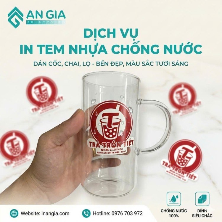 Chất Liệu: In decal giấy Fasson aw 0383f, cán màng bóng/ mờ