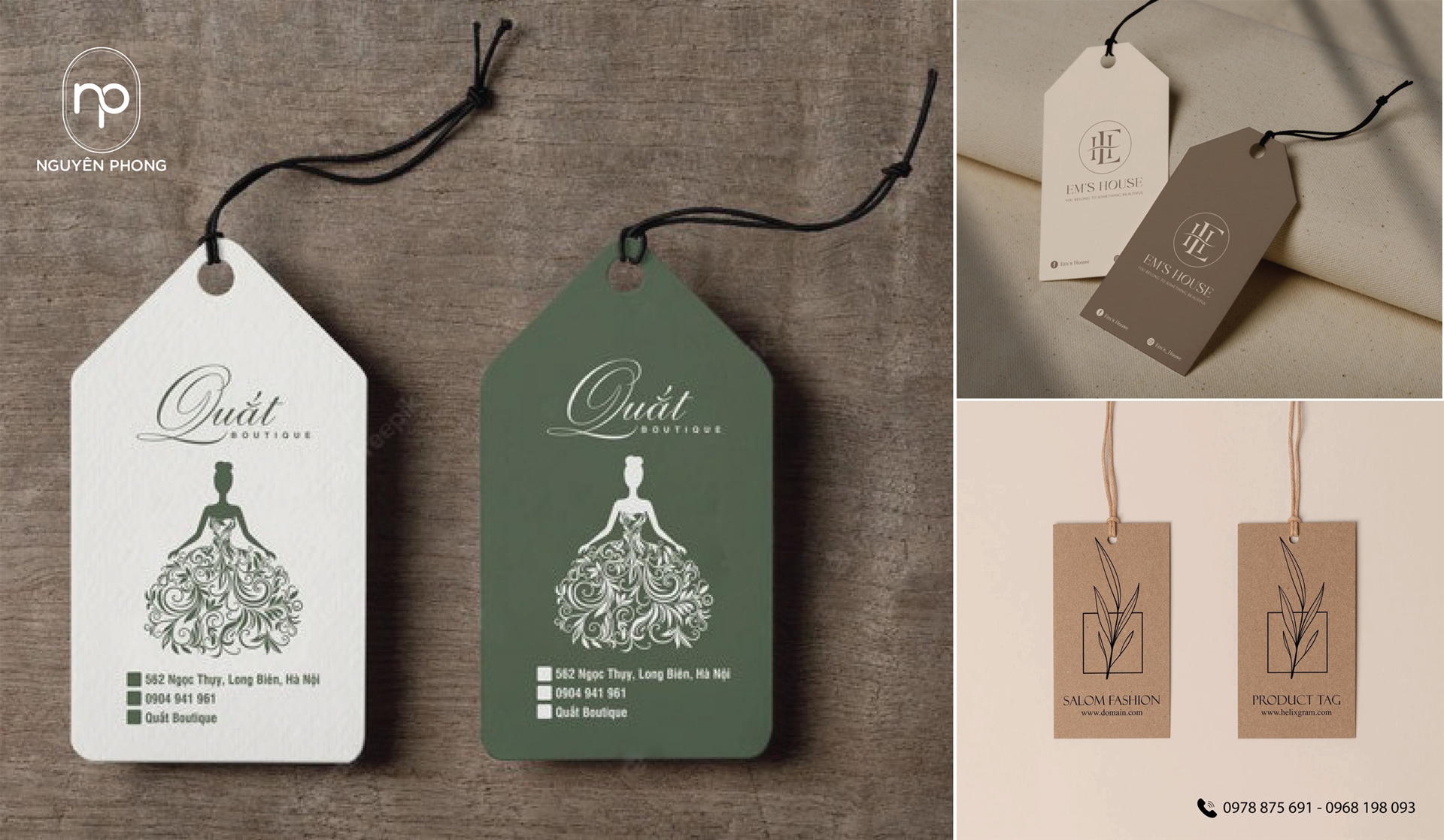 Tag mác quần áo kraft, mác sản phẩm cao ấp, tag treo cửa, tag cảm ơn, tag trang sức, tag chai lọ, bookmark... Tag mác thường được làm bằng giấy couche in ấn 2 mặt và cán mờ 2 mặt, đục lỗ. Ngoài ra, có thể làm bằng các chất liệu giấy mỹ thuật cao cấp, giấy có vân... kèm theo gia công ép nhũ, thúc nổi, dập chìm, uv... để tăng sự sang trọng và cao cấp của sản phẩm.